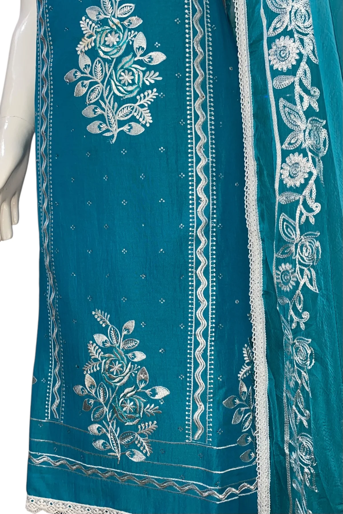 Dupatta: Pure chiffon with thread work & four-side lace